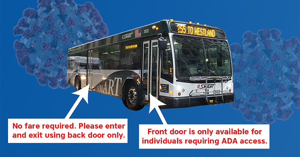 Please know SMART is doing everything reasonable to make it safe for our passengers to continue to ride and prevent the spread of the virus. We are monitoring the situation and will take the necessary actions to best address this situation as it evolves. We will be diligently updating our website, smartbus.org with any updates for our riders.